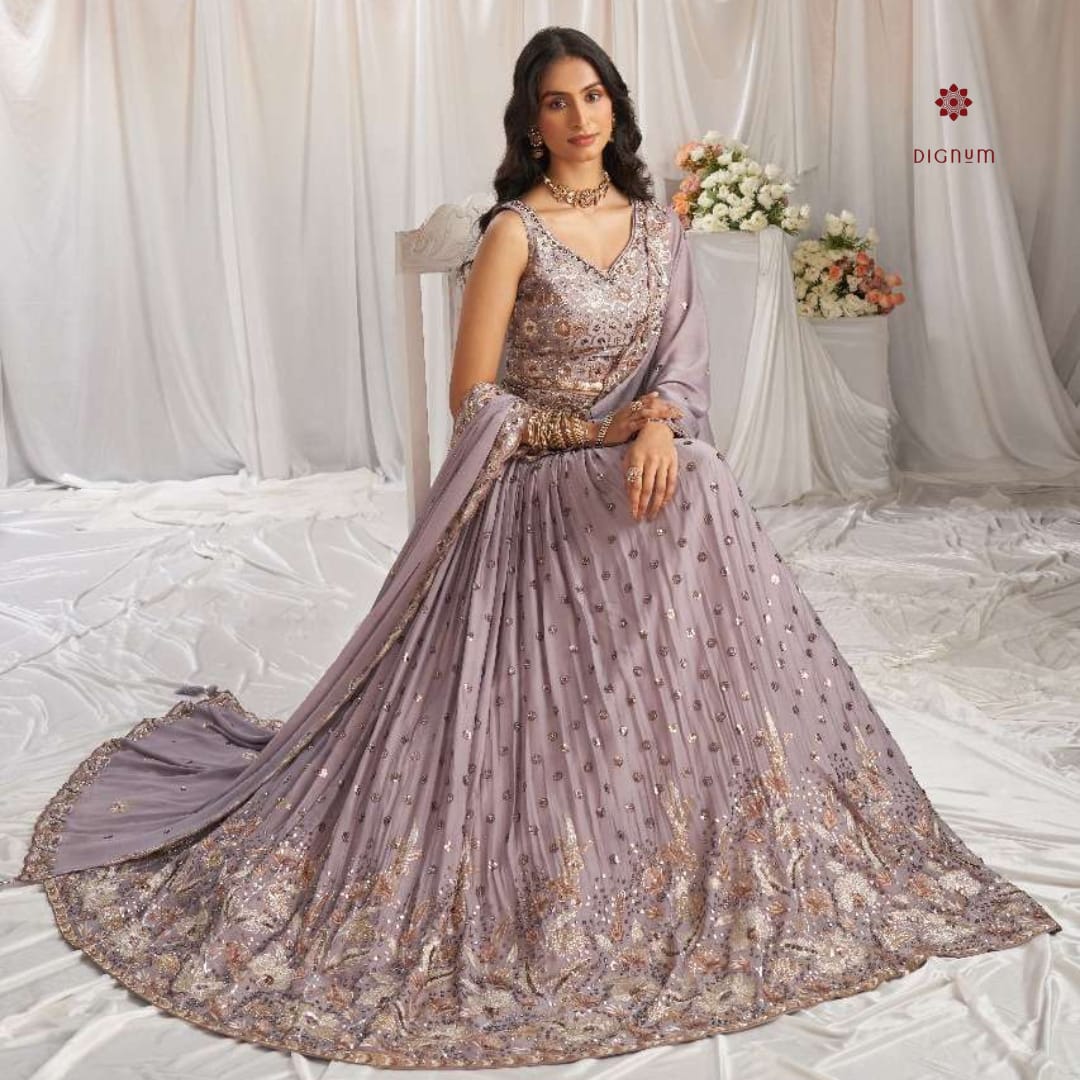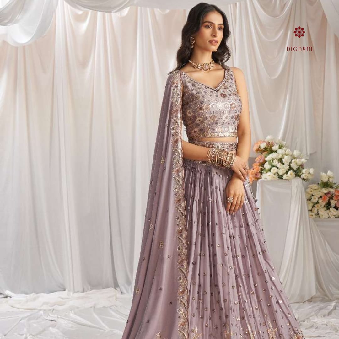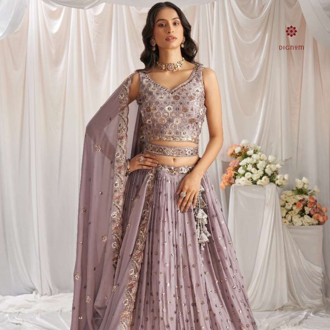 African Violet Designer Embroidered Lehenga Set
