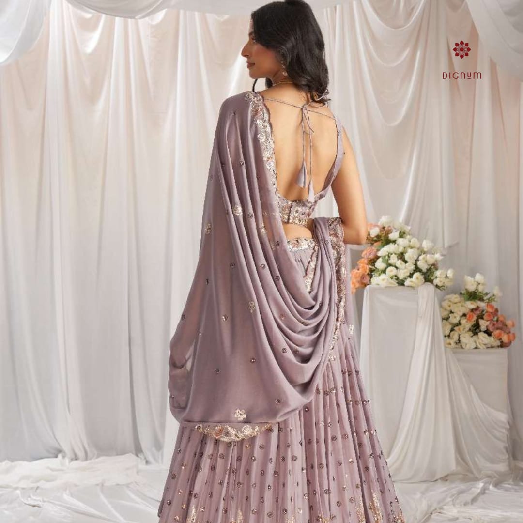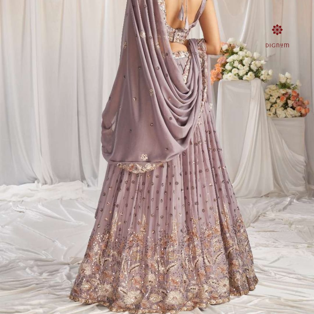 Lehenga Fabric: Premium Quality Georgette Fabric with Sequins Work and Coding Thread Embroidery Lehenga Flair: 3.5 Meters with Inner attached