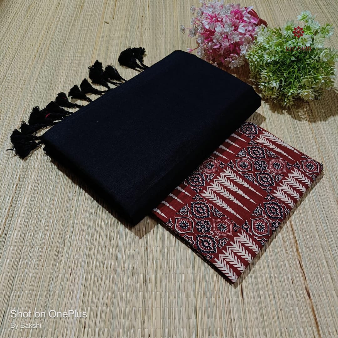 Be the first to review “Black Handloom Cotton Saree with Printed Blouse”