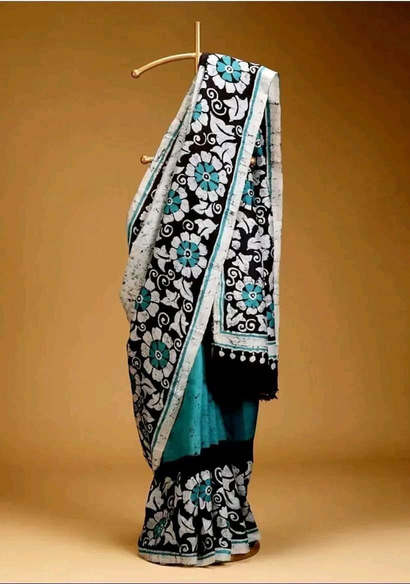Saree Fabric: Handmade Wax Batik Painted Pure Bishnupuri Silk 3 Ply Saree with Beautiful Pallu. It’s a Premium Quality Silk Mark Certified Saree.
