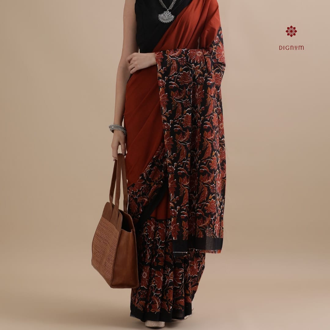 Be the first to review “Brown Black Mulmul Cotton Printed Saree”