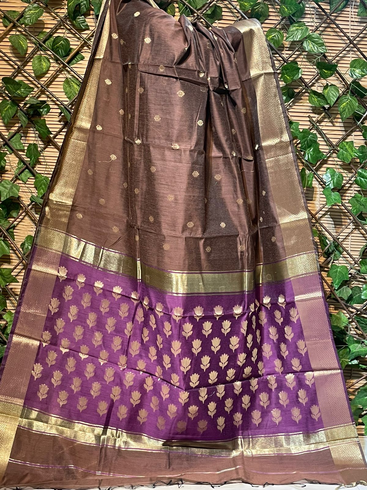 Be the first to review “Brown Half and Half Pattern Maheshwari Saree”