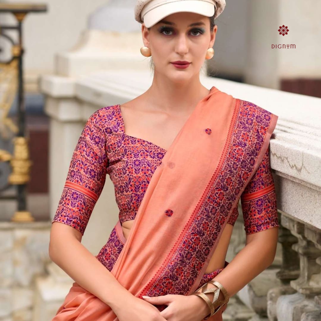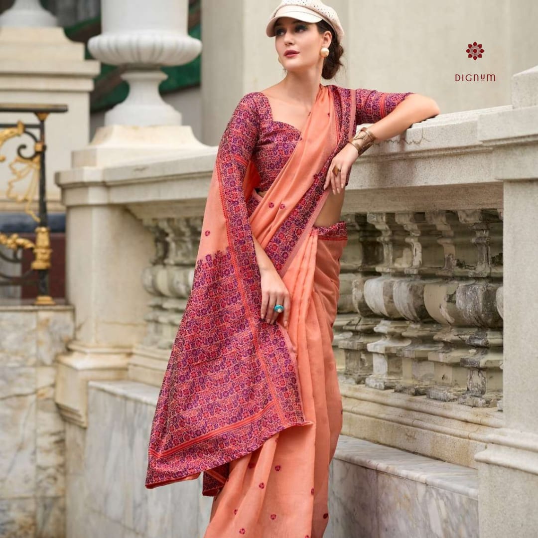 Linen is made from fibers derived from the stems of the flax. Linen Sarees are in demand in hot and humid climates. Linen is stronger than cotton and happen to last a lot longer. Linen is highly breathable and known to fit for every season and occasion. When linen is combined with cotton, khadi or silk, the saree becomes softer. Linen contains a higher moisture absorbency than cotton and silk combined. Due to less resource requirement in production, making of Linen is comparatively eco-friendly and more sustainable than any other kind of fabric.