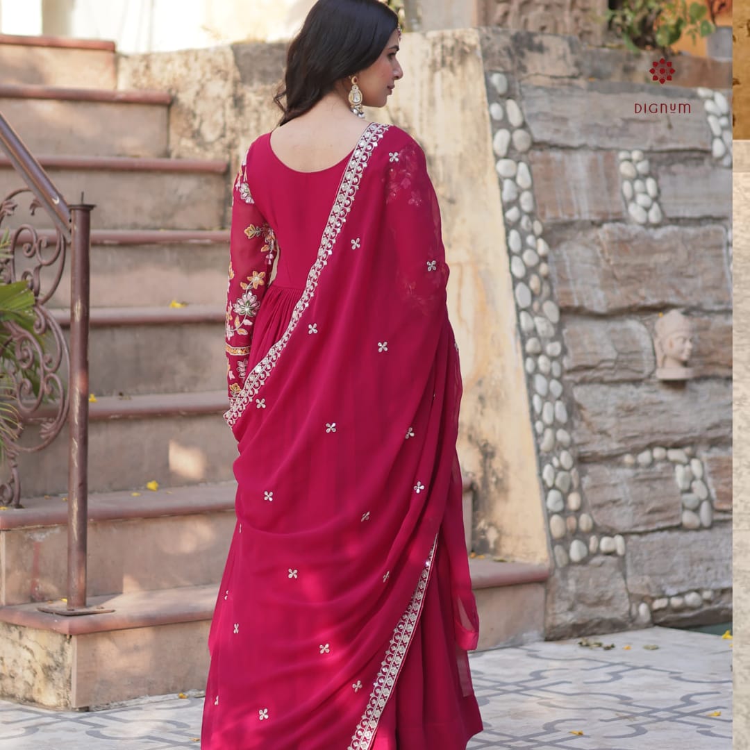 Gown Fabric: Faux Blooming Georgette with Embroidery and Zari Sequins Work