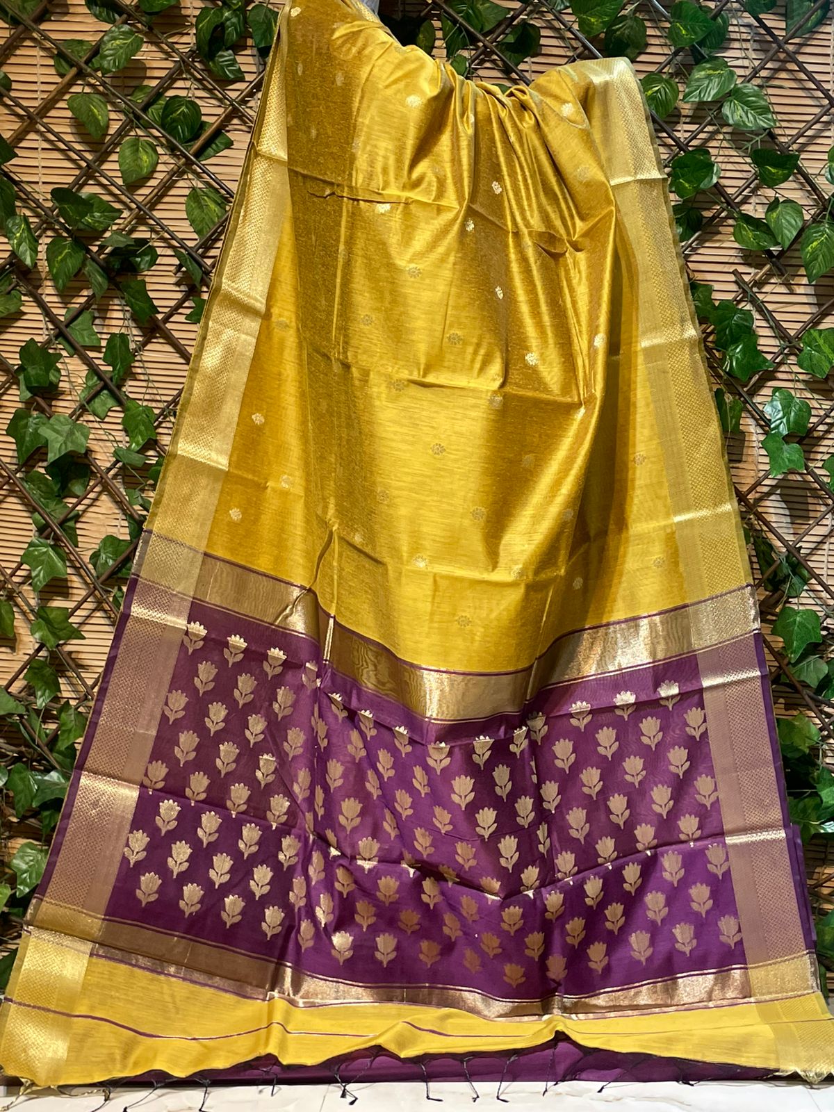 Golden Yellow Half and Half Pattern Maheshwari Saree