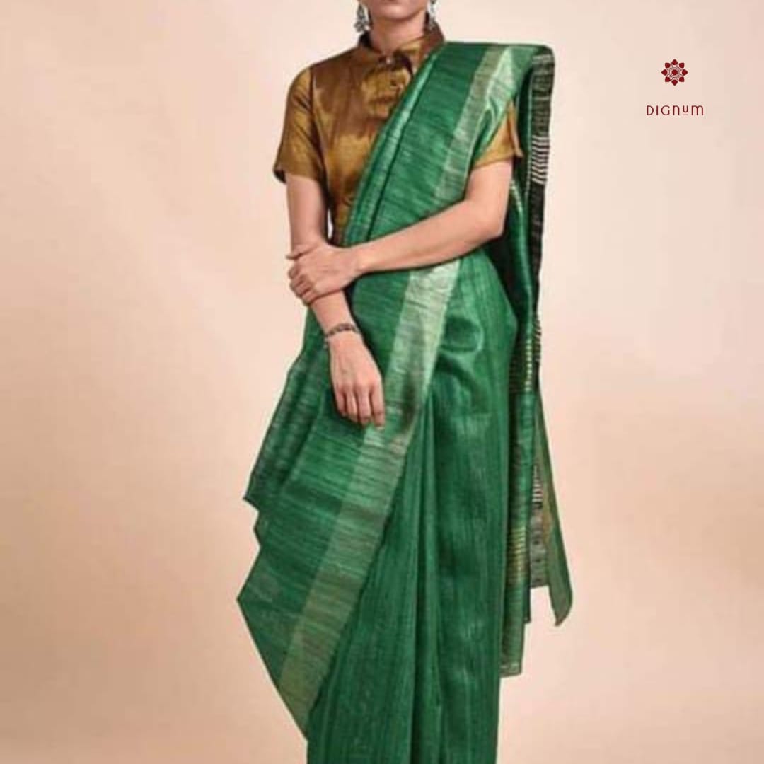 Green Handloom Pure Tussar Silk Saree