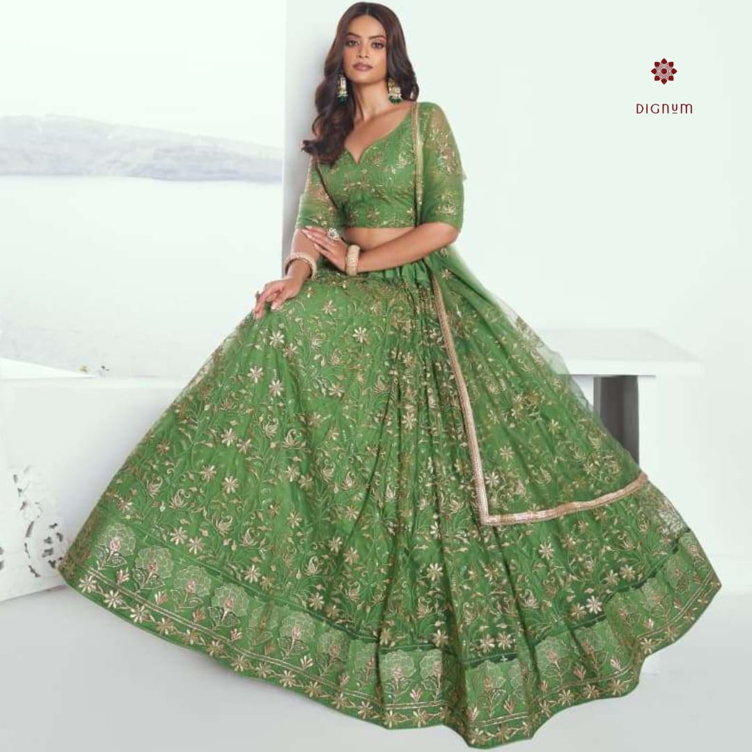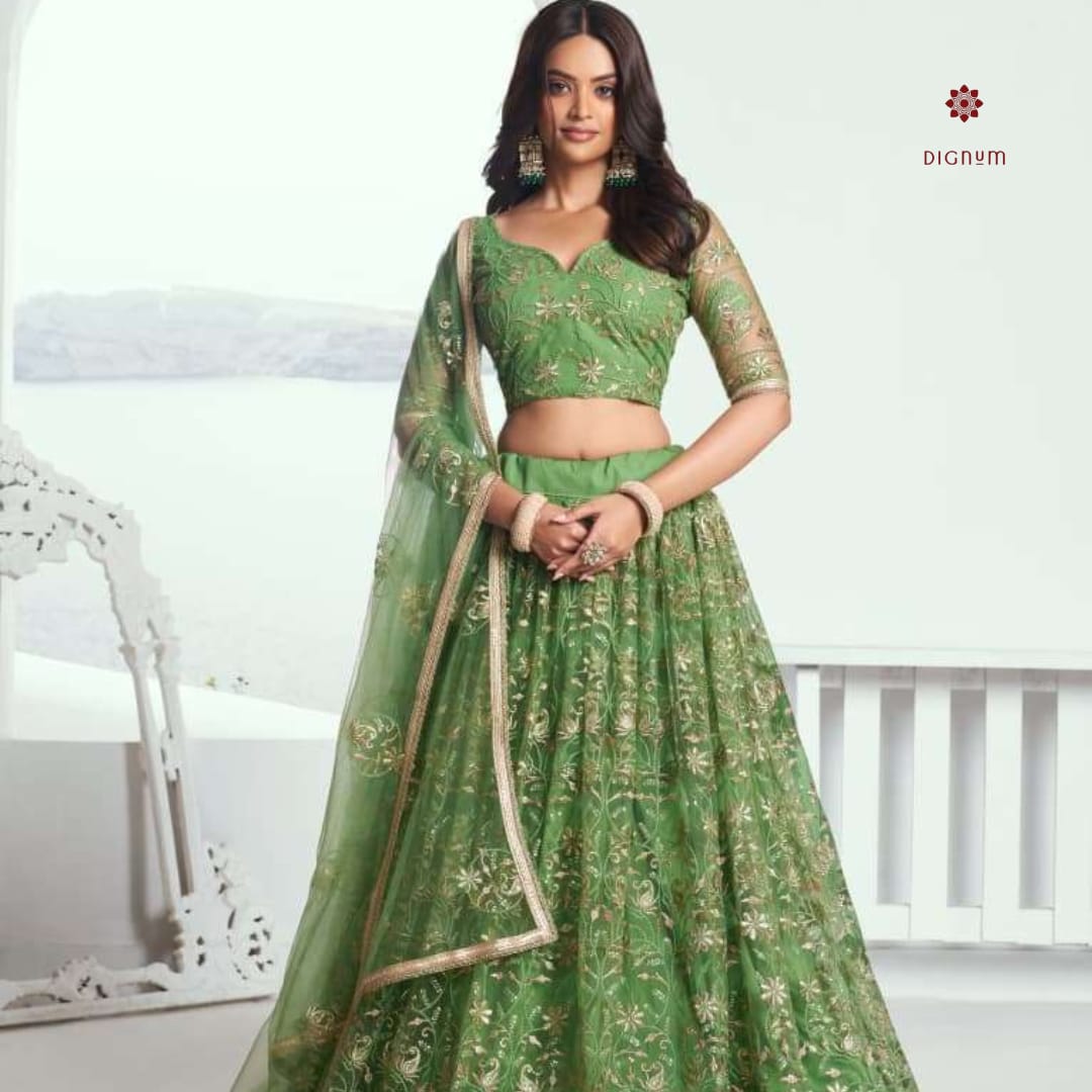 Green Soft Net Embroidered Lehenga Choli