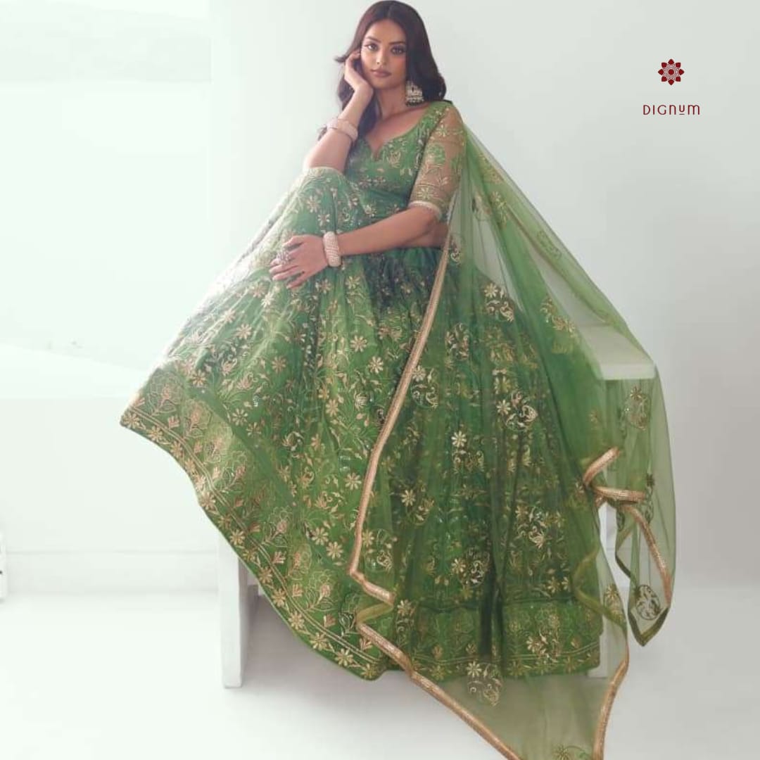 Be the first to review “Green Soft Net Embroidered Lehenga Choli”