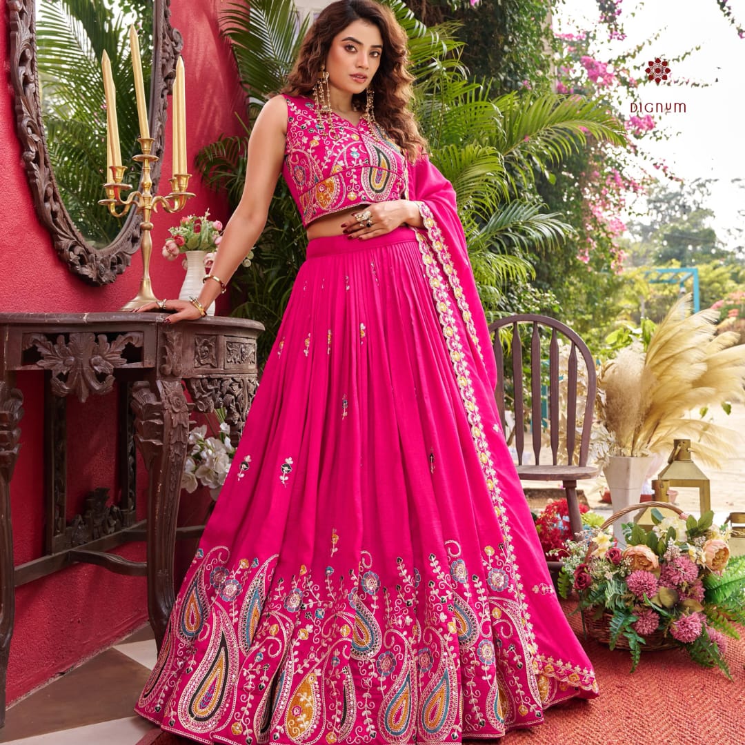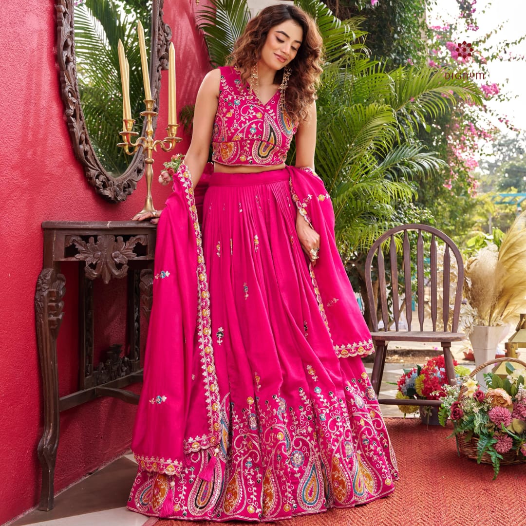 Hot Pink Designer Embroidered Lehenga Set