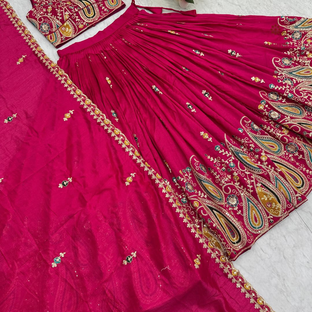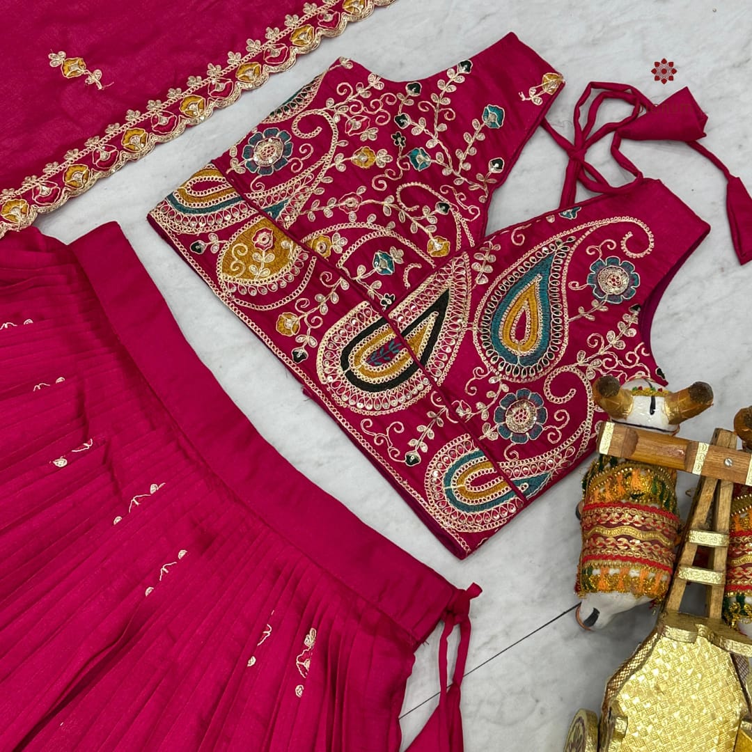 Lehenga Fabric: Pure Vichitra Silk (Blended Silk) Lehenga with Heavy cording Embroidery along with Sequence & Thread Work