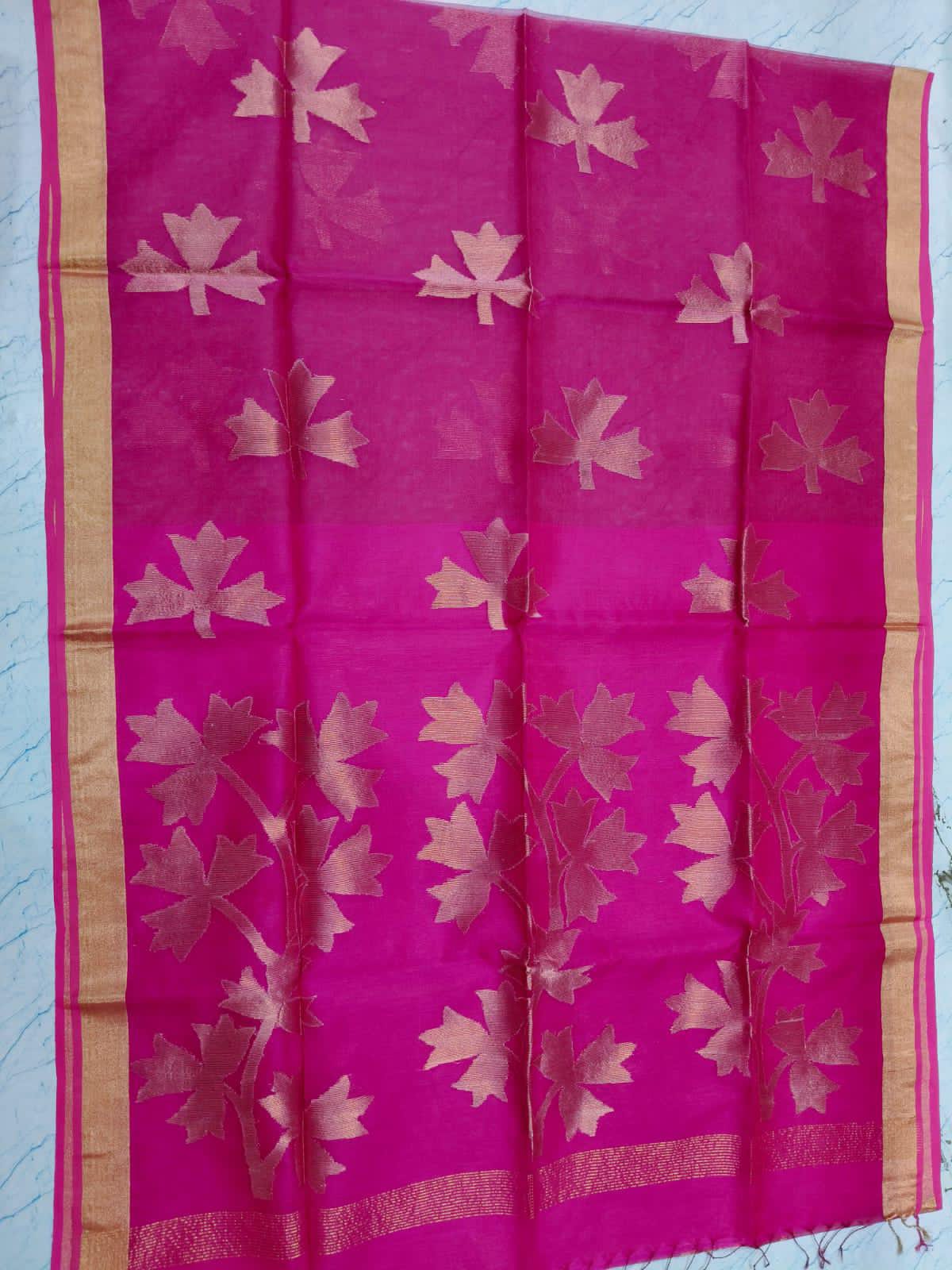 Hot Pink Handwoven Pure Muslin Jamdani Saree