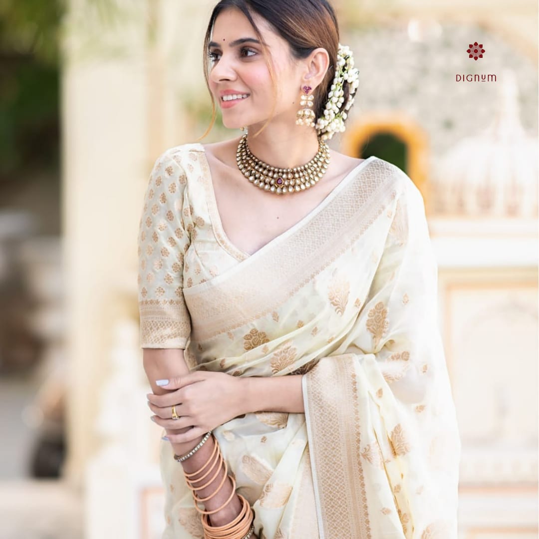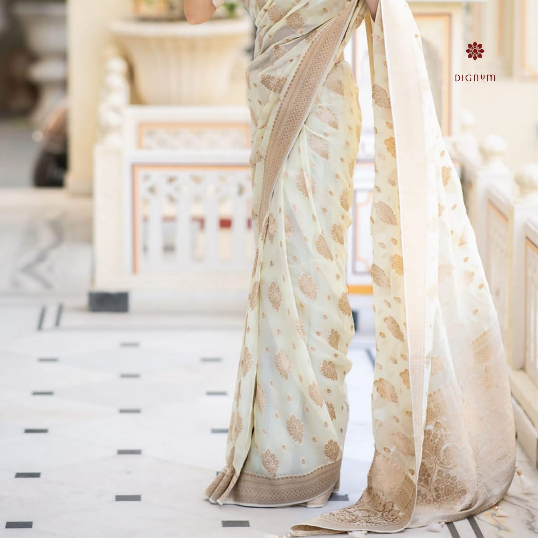Ivory White Woven Banarasi Georgette Saree