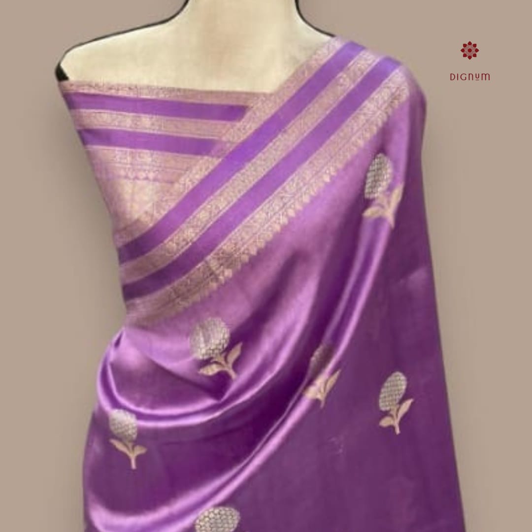 Lavender Purple Banarasi Raw Mango Katan Silk Saree