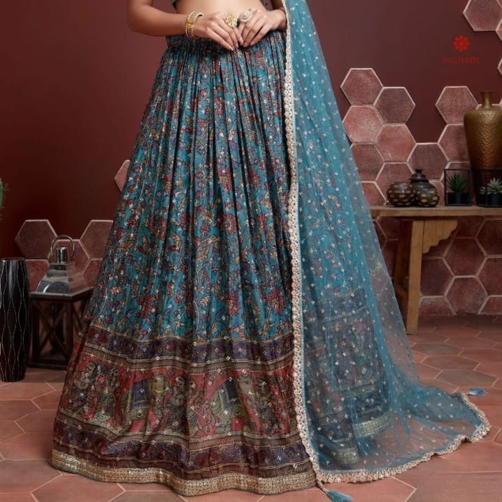 Be the first to review “Light Sapphire Blue Embroidered Silk Lehenga Set”