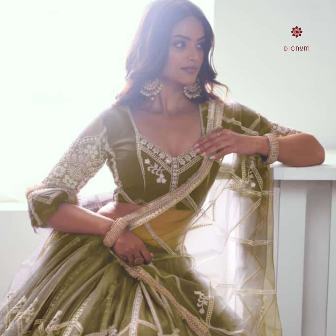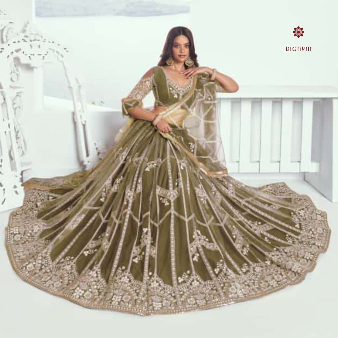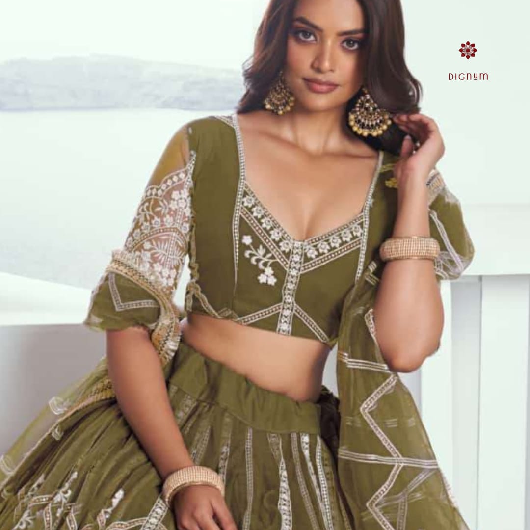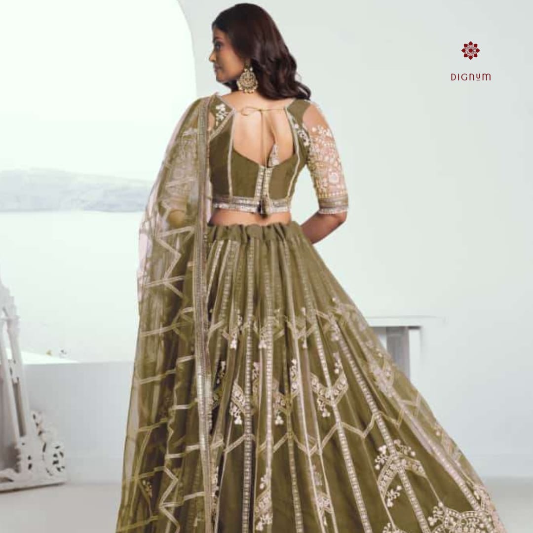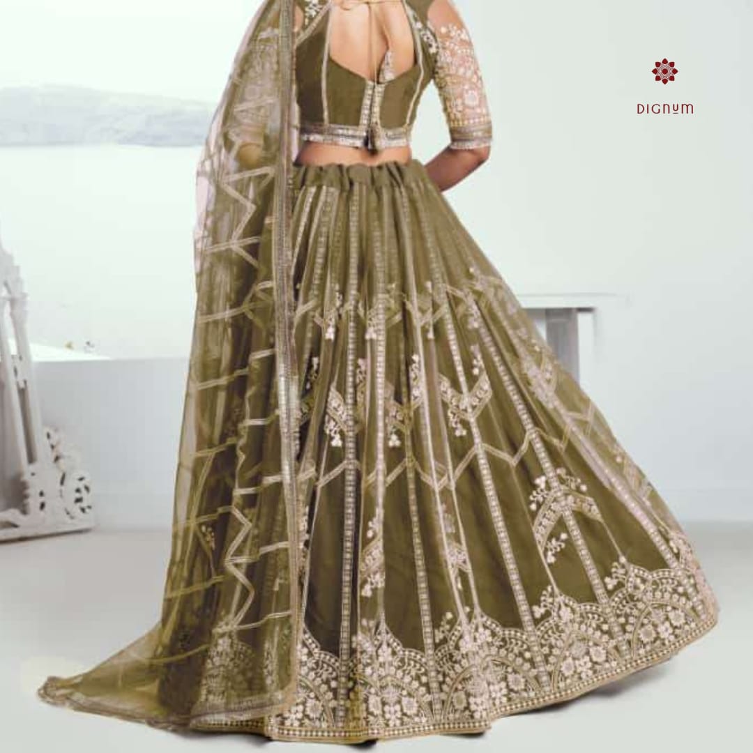 Be the first to review “Mehendi Green Embroidered Butterfly Net Lehenga Set”