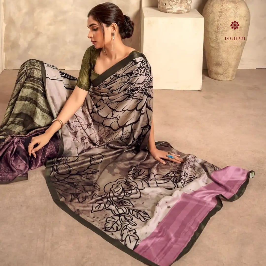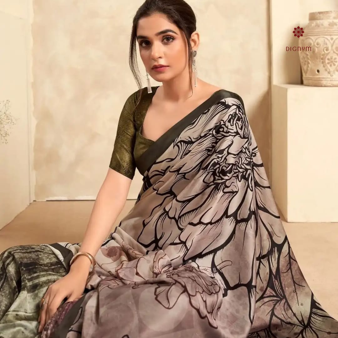 Saree Fabric: Elevate your ethnic style with this elegant soft crepe satin silk saree, adorned with a stunning digital print that brings a modern flair to traditional charm. The smooth yet slightly textured fabric drapes beautifully, offering a perfect blend of comfort and sophistication. Paired with a contrast soft crepe satin silk blouse, it creates a striking ensemble ideal for any special occasion.