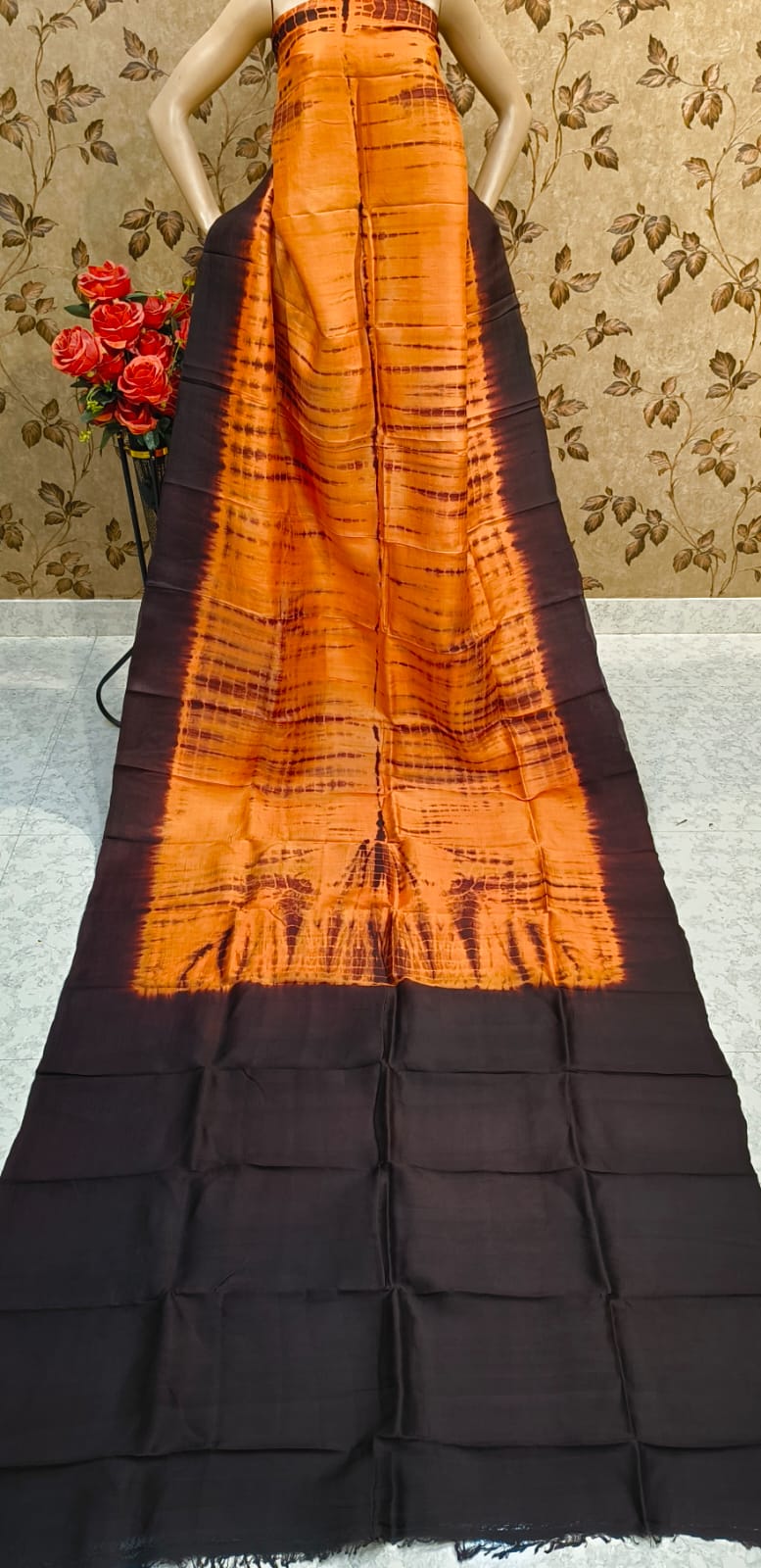 Be the first to review “Orange Brown Bandhani Shibori Pure Silk Saree”