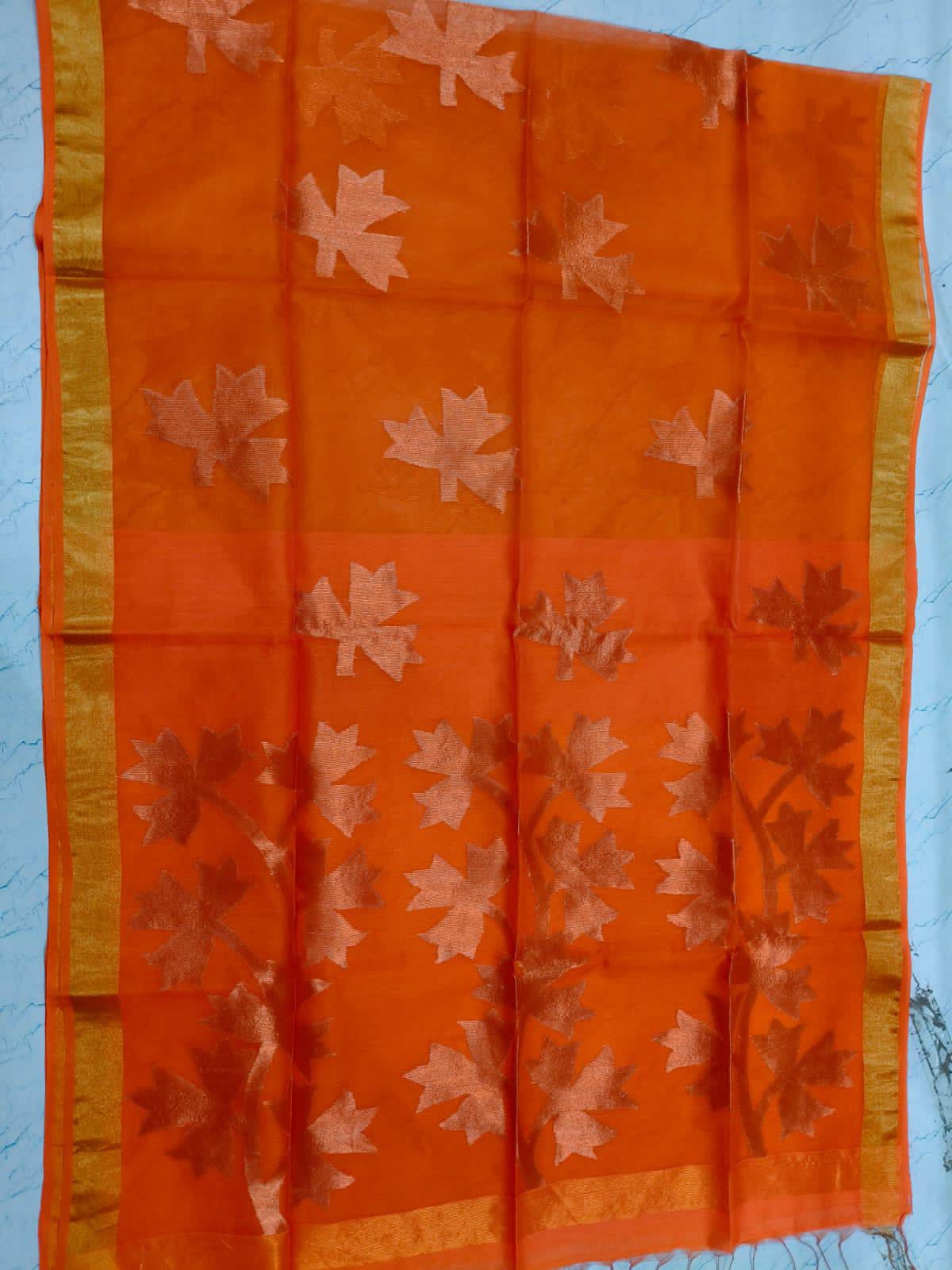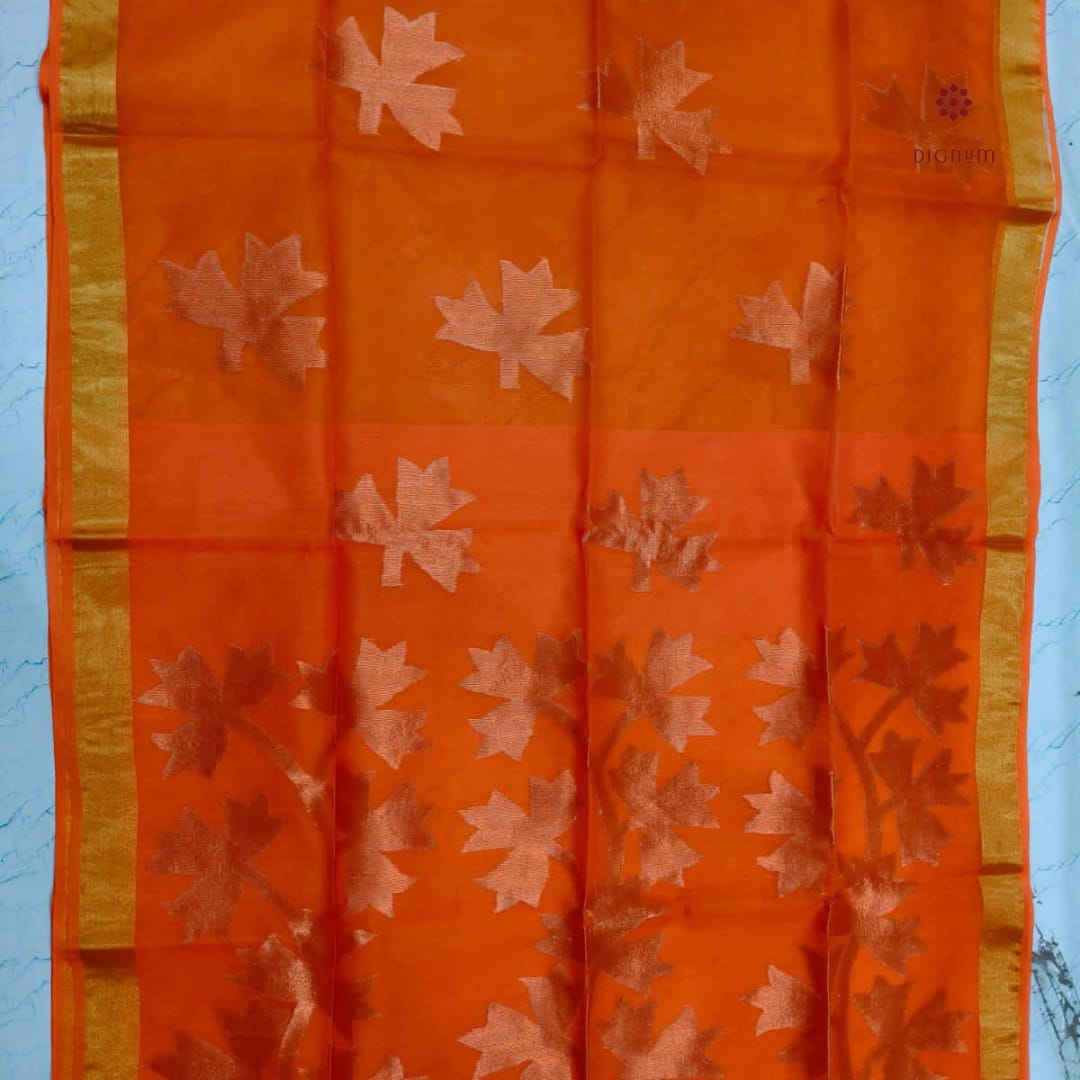 Orange Handwoven Pure Muslin Jamdani Saree