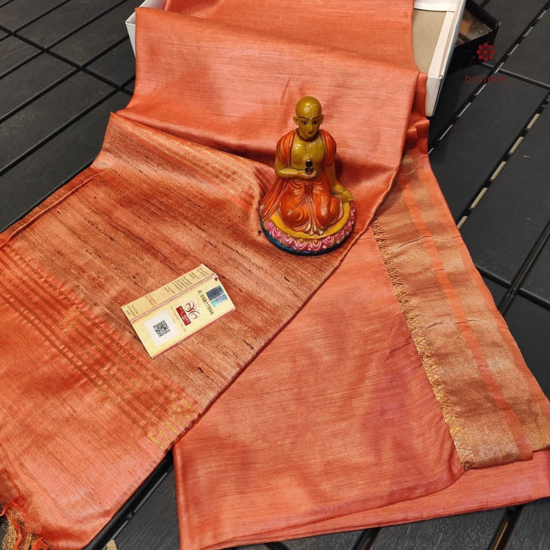 Be the first to review “Orange Pure Tussar Munga Banarasi Saree”