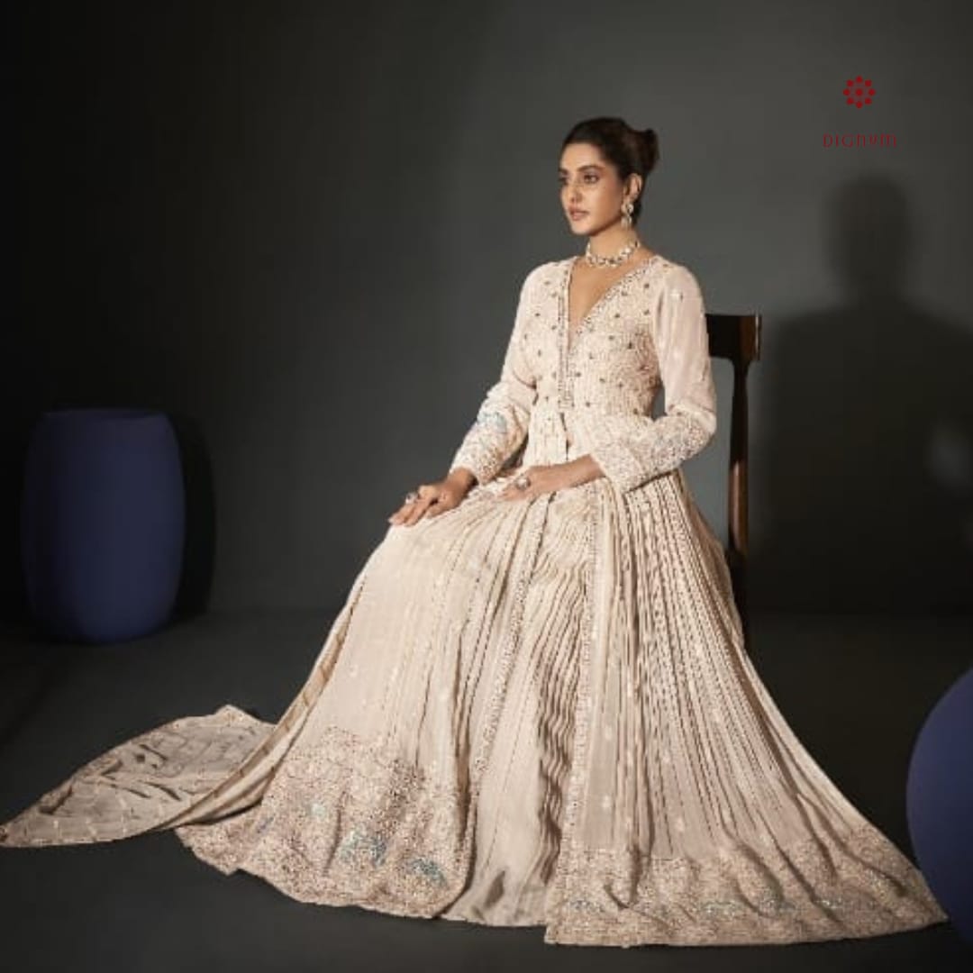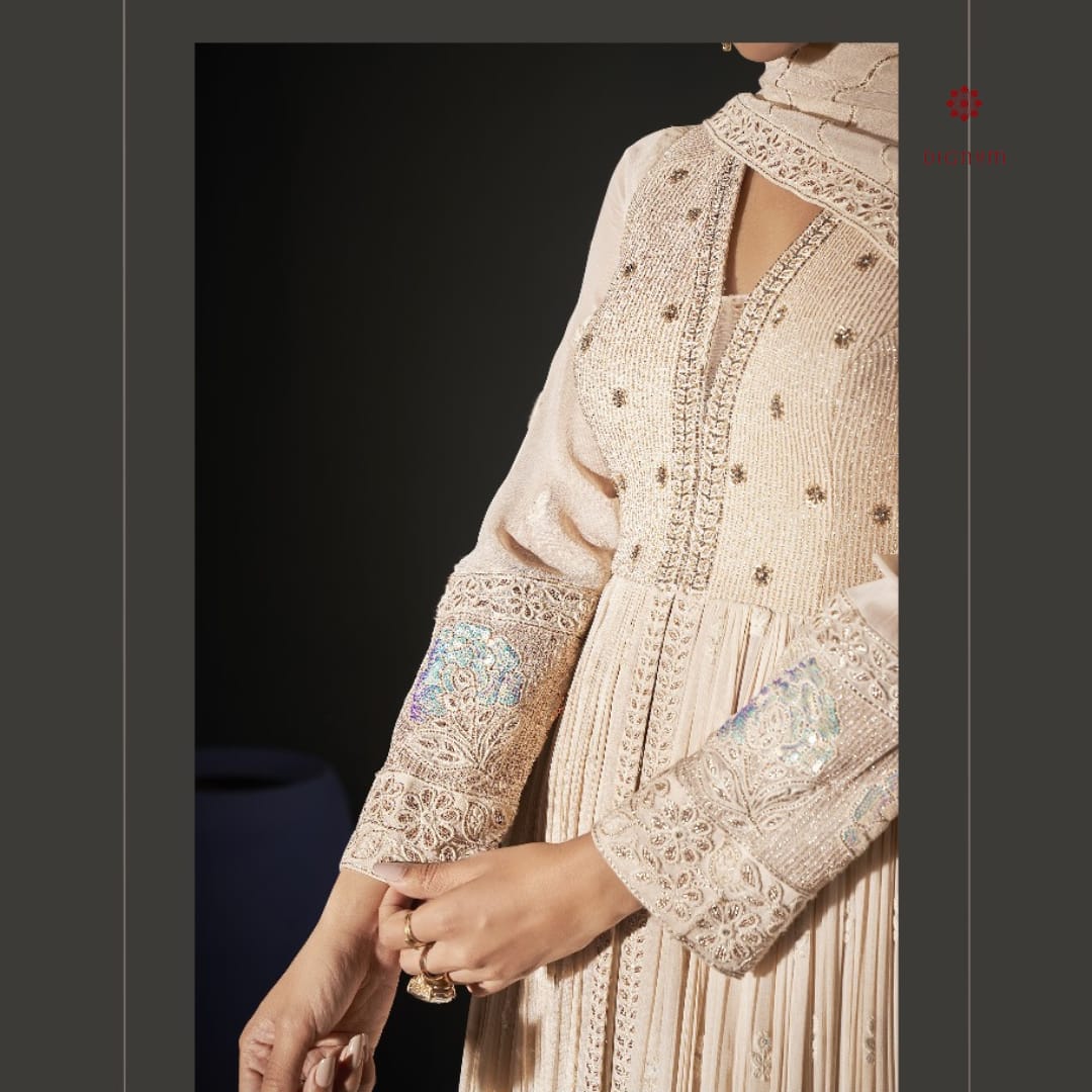 The outfit is lined with soft Santoon fabric for added comfort, while the matching dupatta in pure georgette elevates the ensemble with its heavy Chikankari and zari work, completing the regal look.