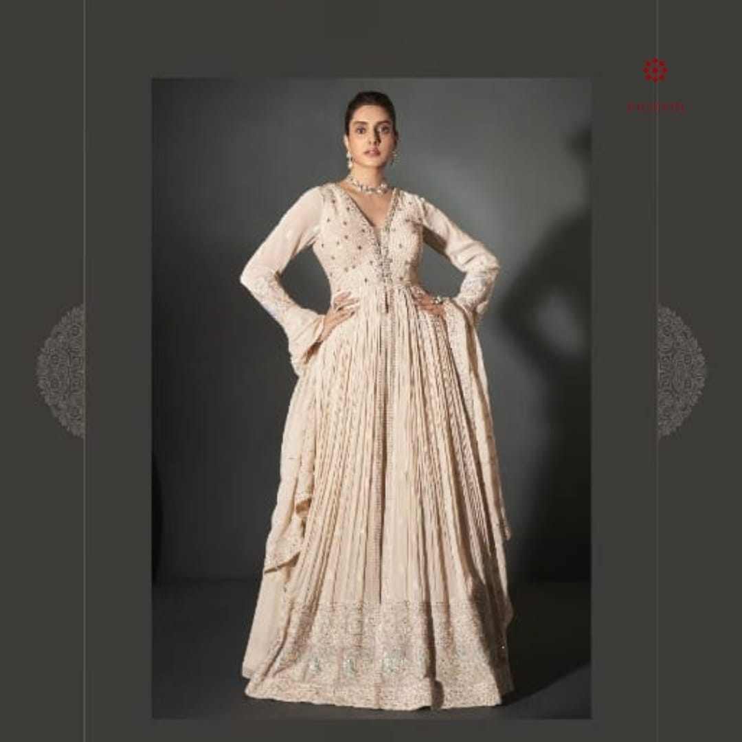 Kurta Fabric: Make a grand statement at any celebration with this elegantly crafted Anarkali Kurti, designed in luxurious pure georgette fabric. Featuring full sleeves and a flattering silhouette, this piece is adorned with intricate Chikankari embroidery, shimmering sequence work, delicate thread detailing, and exquisite zari accents, a perfect blend of tradition and contemporary charm.