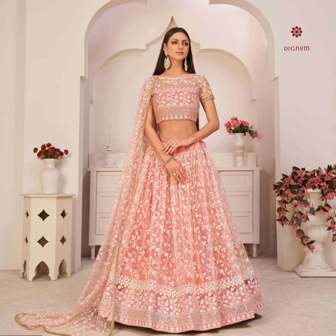 Be the first to review “Peach Pink Embroidered Net Lehenga Choli”