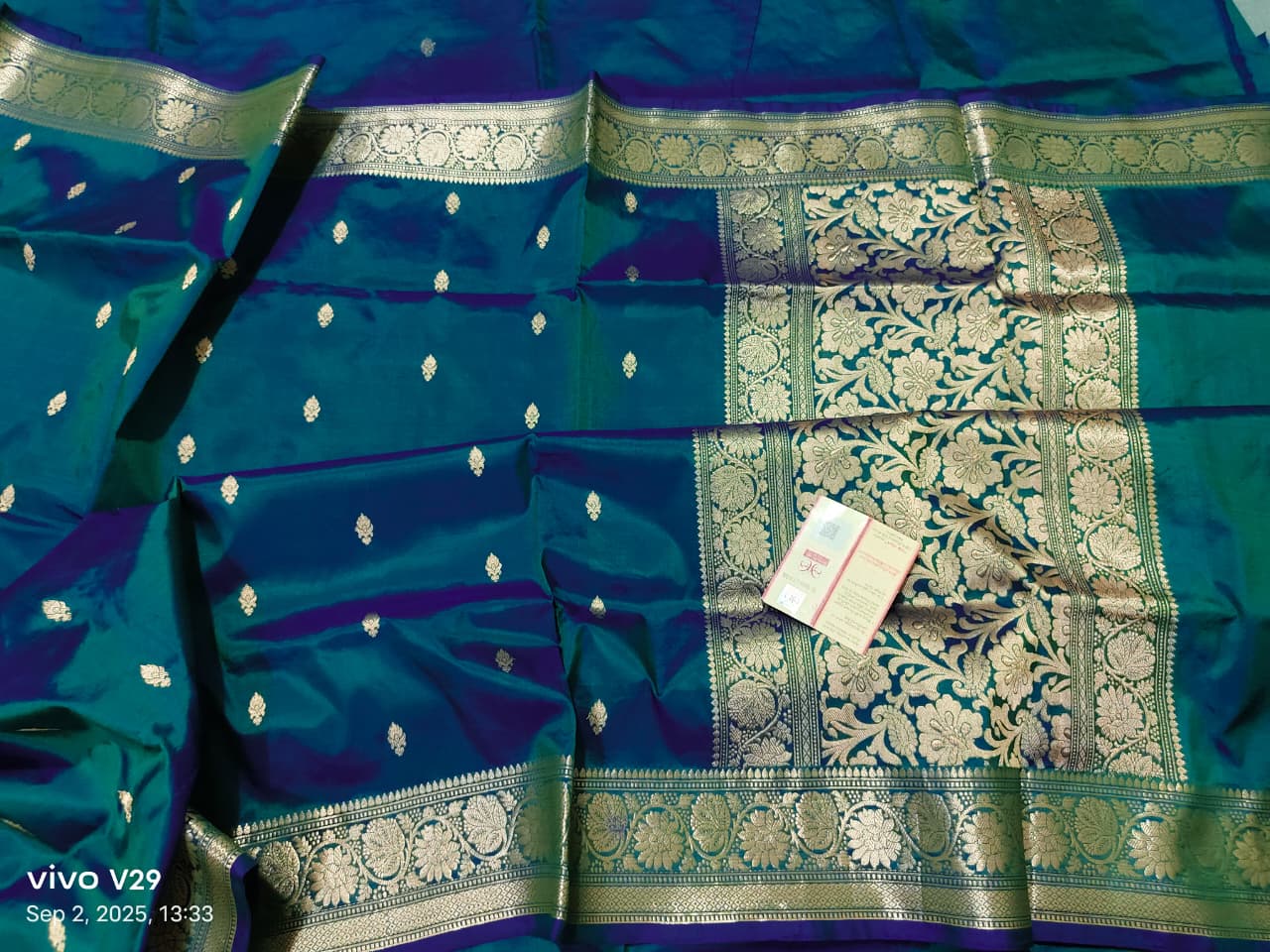 Peacock Blue Handloom Pure Katan Silk Banarasi Saree