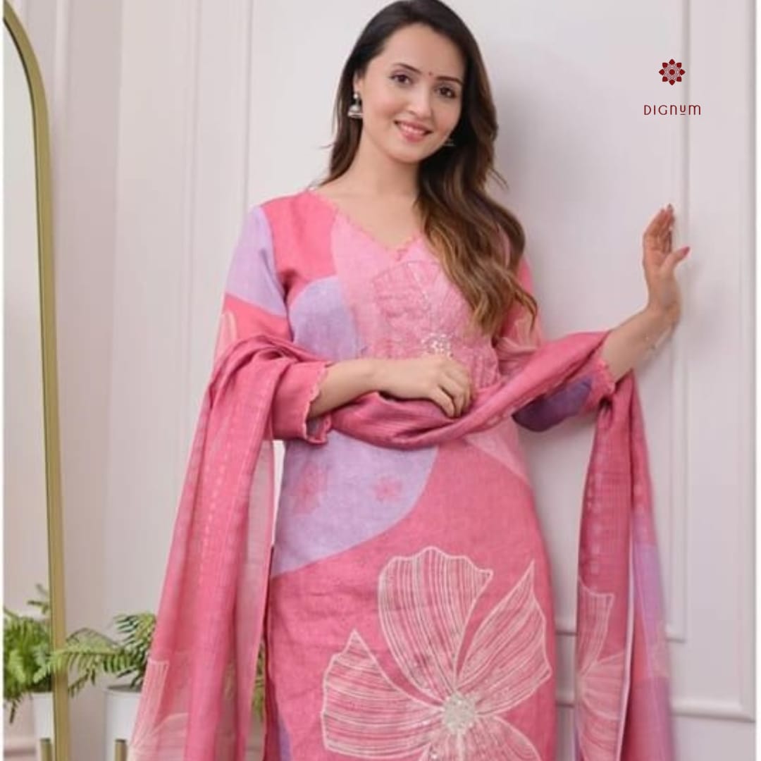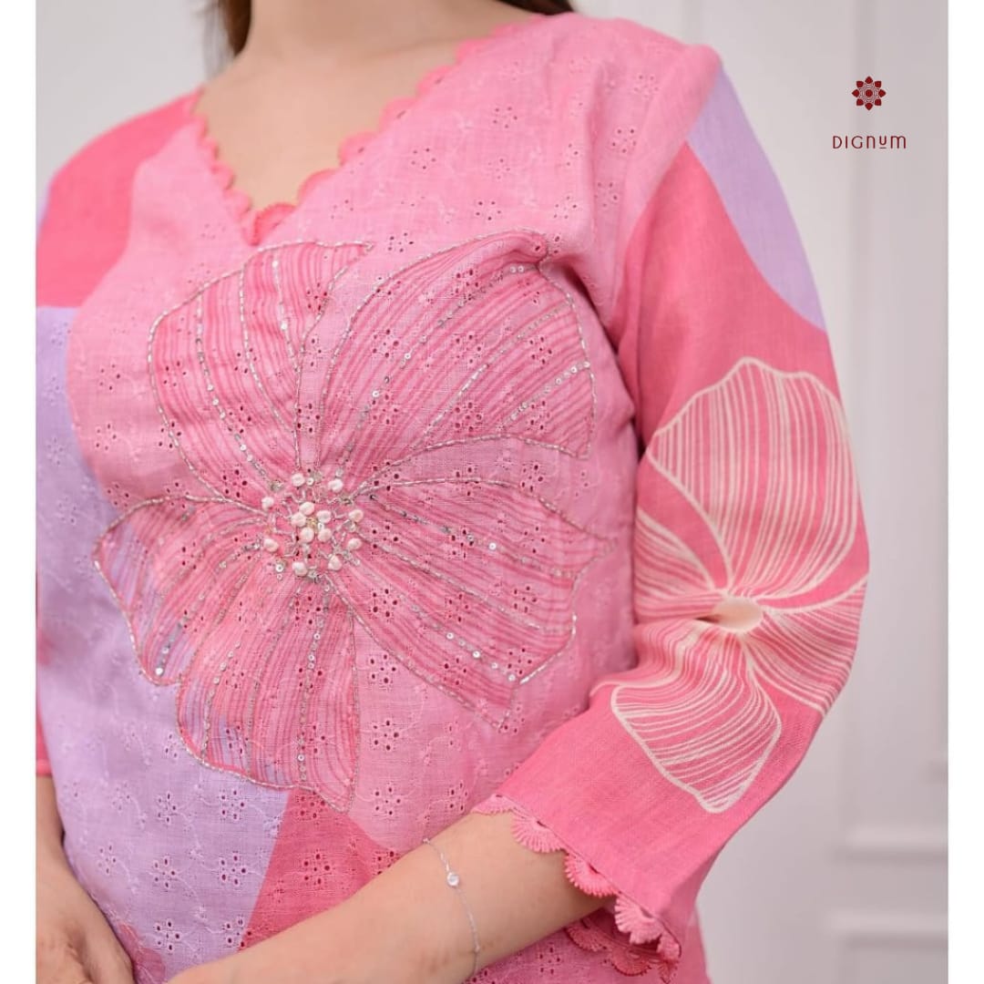 Be the first to review “Pink Heavy Schiffli Linen Embroidered Suit Set”