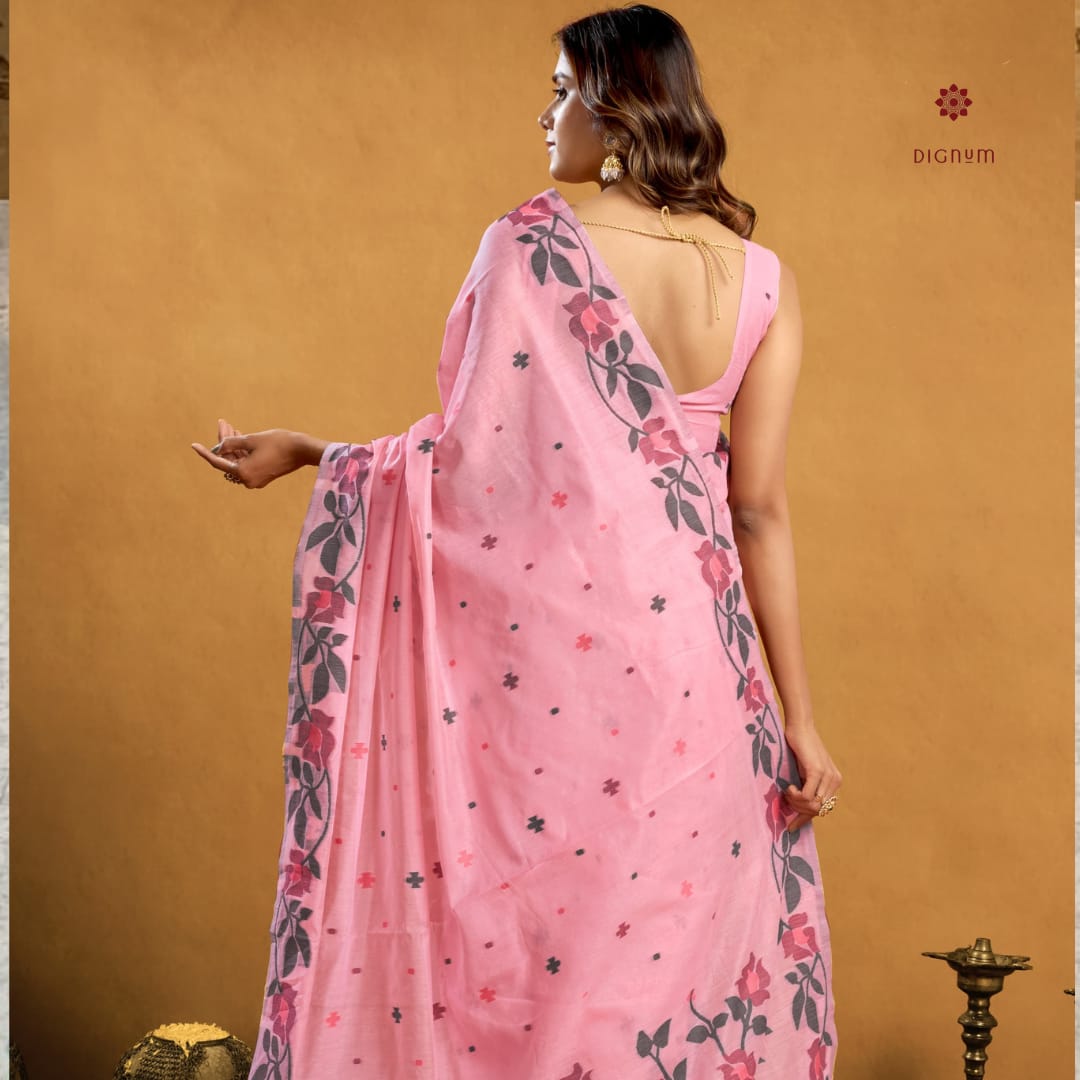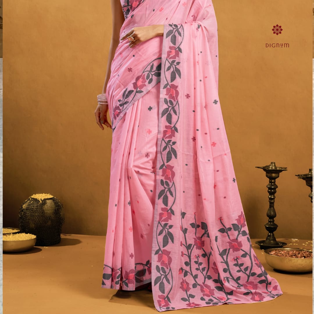 Be the first to review “Pink Pure Muga Cotton Jamdani Saree”