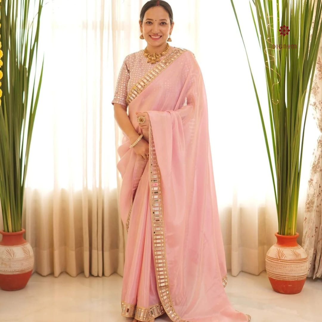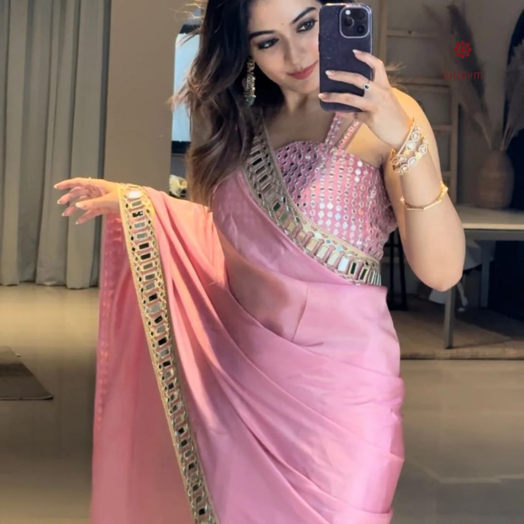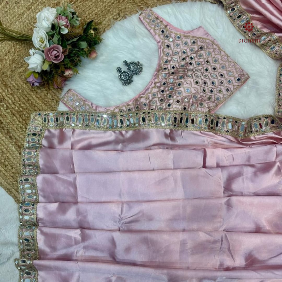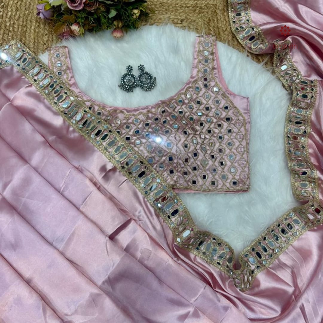 Saree Fabric: Satin Silk Saree with Original Mirror and Embroidery Work