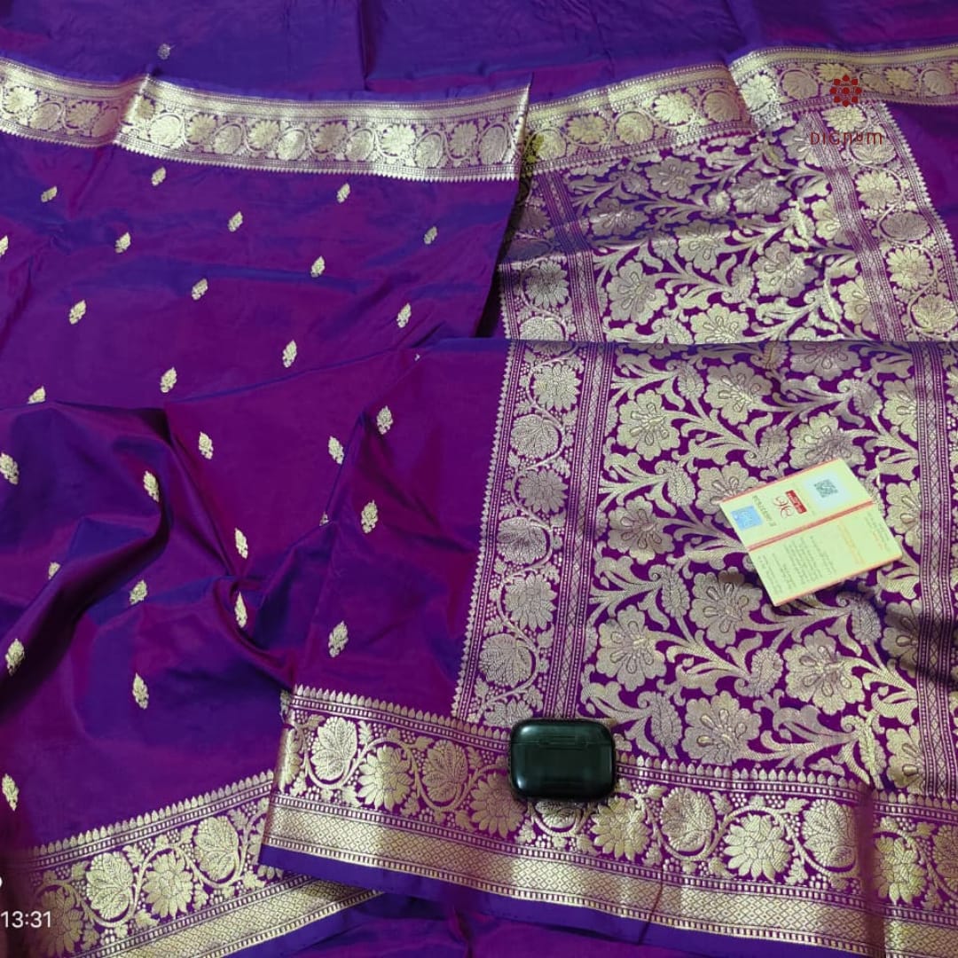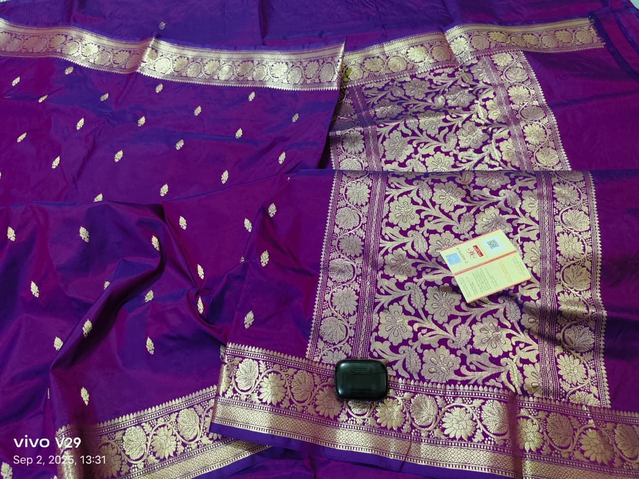 Be the first to review “Purple Handloom Pure Katan Silk Banarasi Saree”