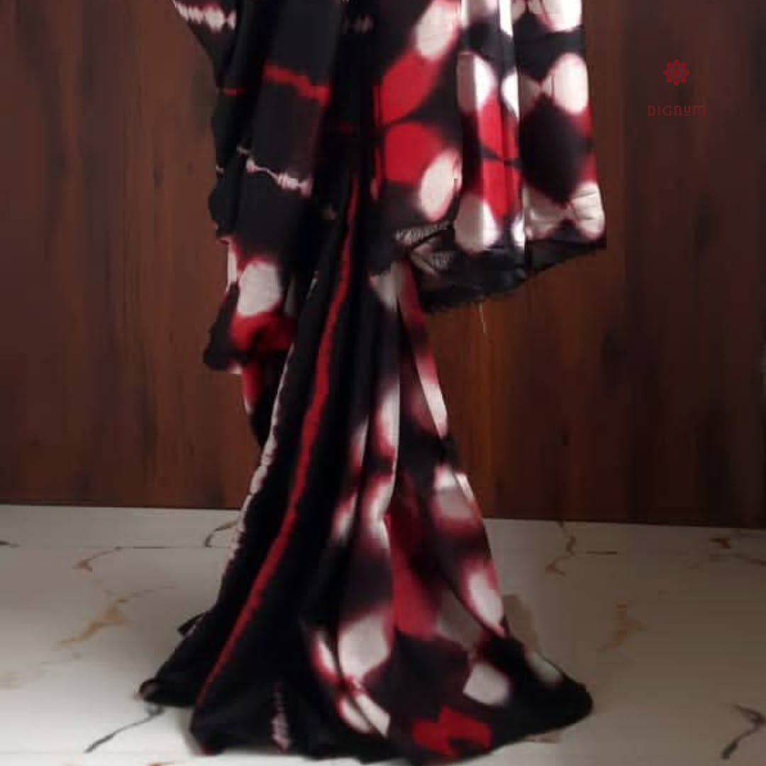 Be the first to review “Raven Black Pure Silk Tie & Dye Hand Bandhani Saree”