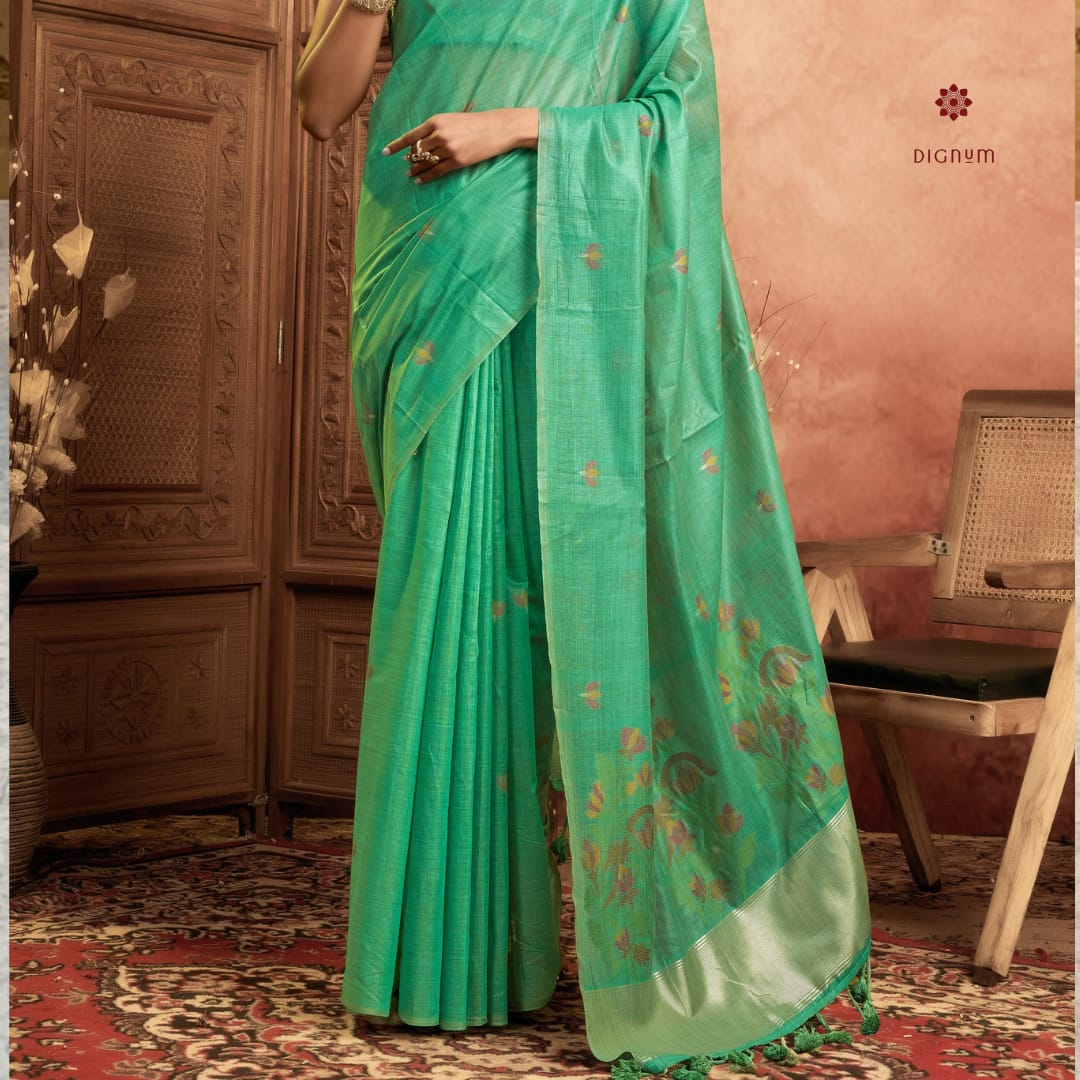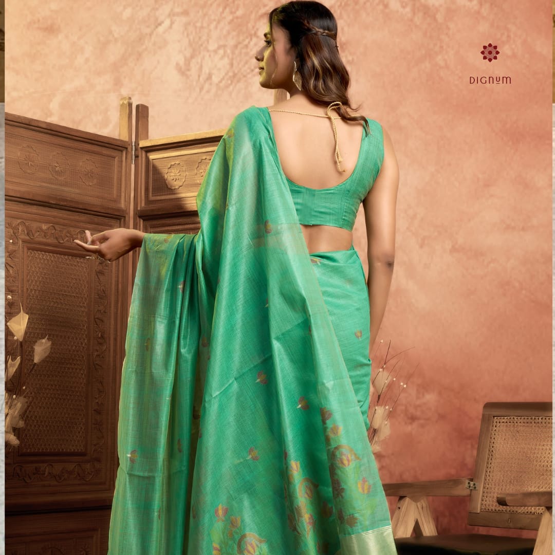 Sea Green Muga Cotton Weaving Saree