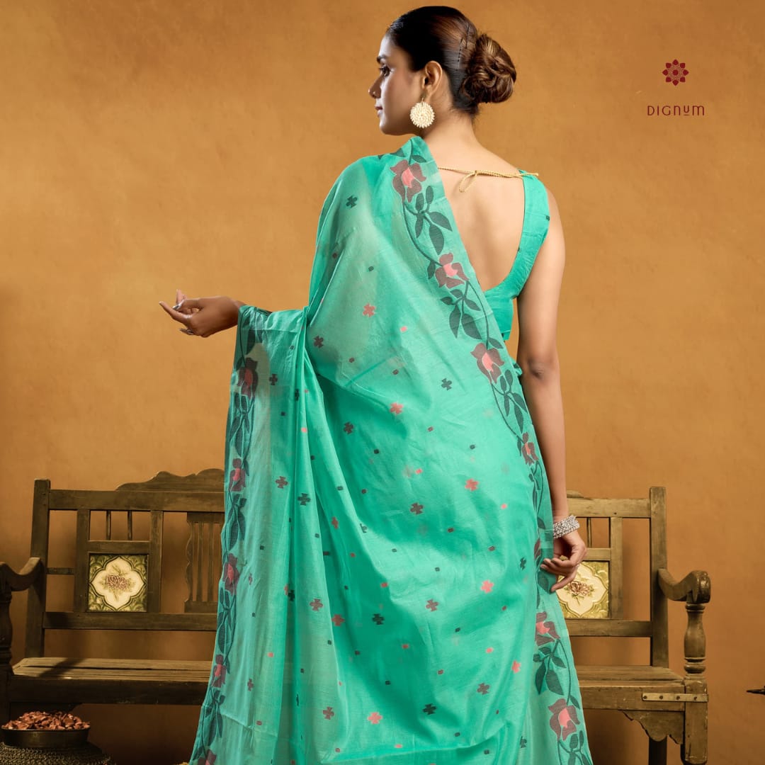 Be the first to review “Sea Green Pure Muga Cotton Jamdani Saree”