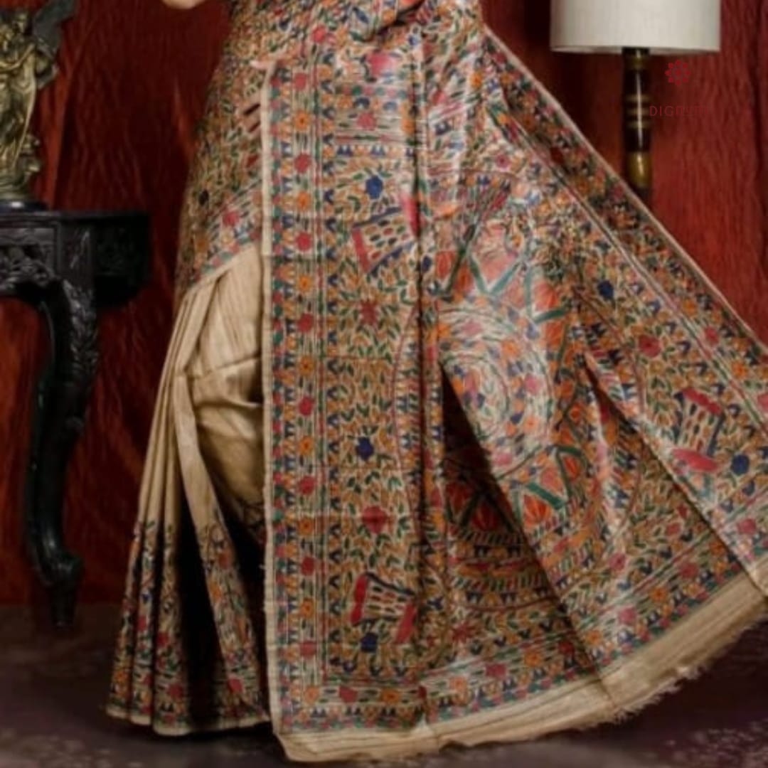 Shade of Beige Tussar Madhubani Hand Painted Saree