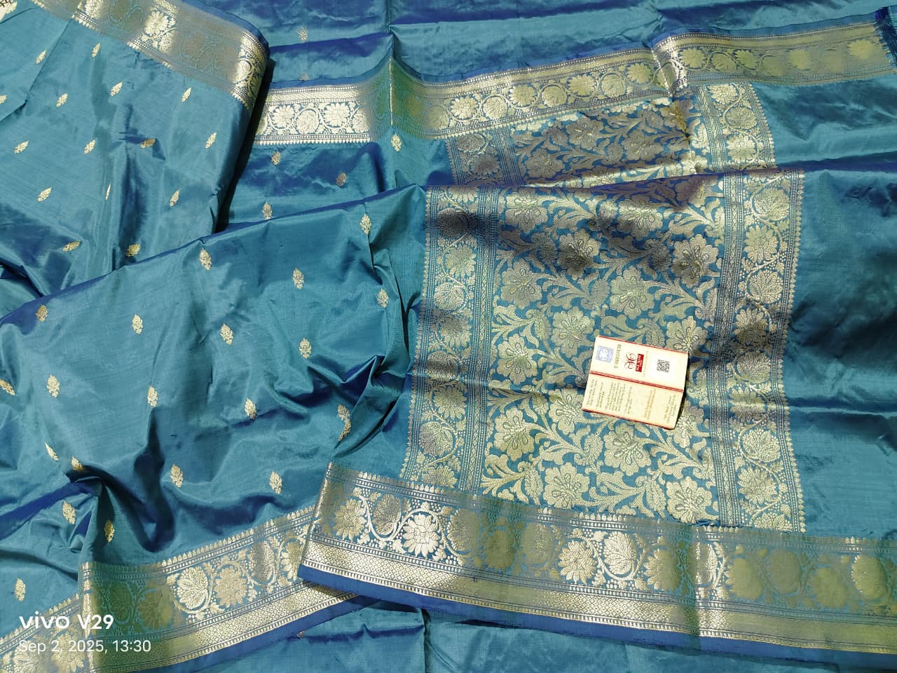 Be the first to review “Slate Blue Handloom Pure Katan Silk Banarasi Saree”